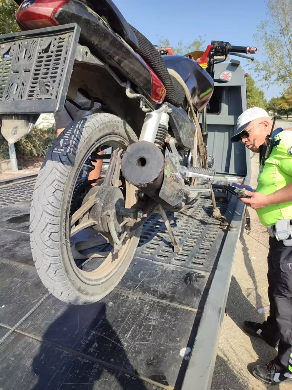 Sürücüye “ehliyetsiz motosiklet kullanmak”, “dur ihtarına uymamak”, “abartı egzoz kullanmak”, “resmi belgeyi bozmak” ve “kask takmamak” unsurlarından 50 bin 546 lira ceza kesildi.
