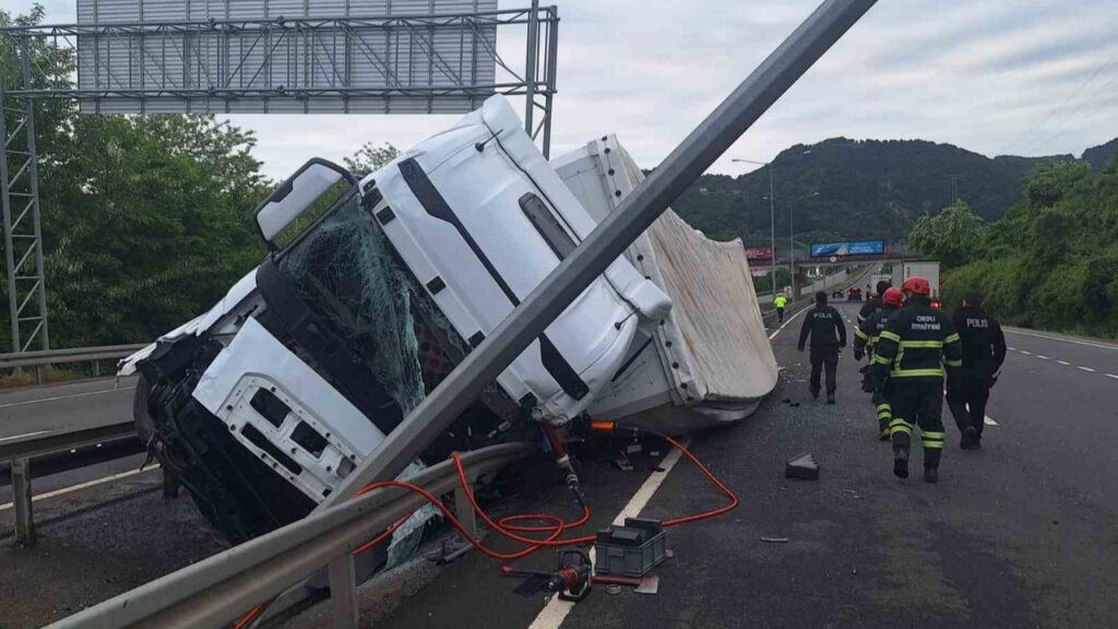 Ordu’nun Ünye ilçesinde, 28 Mayıs 2025 sabahı meydana gelen trafik kazasında çay yüklü bir tır devrildi. Şoför Kenan Katip’in (53) sol kolunun koptuğu feci kaza, bölgeyi sarsarken, yaralı şoför ve kopan kolu süratle Samsun’a sevk edildi.