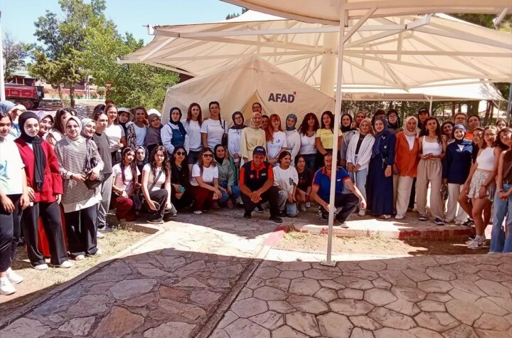 Ahi Evran Gençlik Kampı'nda AFAD uzmanları tarafından gençlere afet idaresi, çadır kurma ve mümkün...